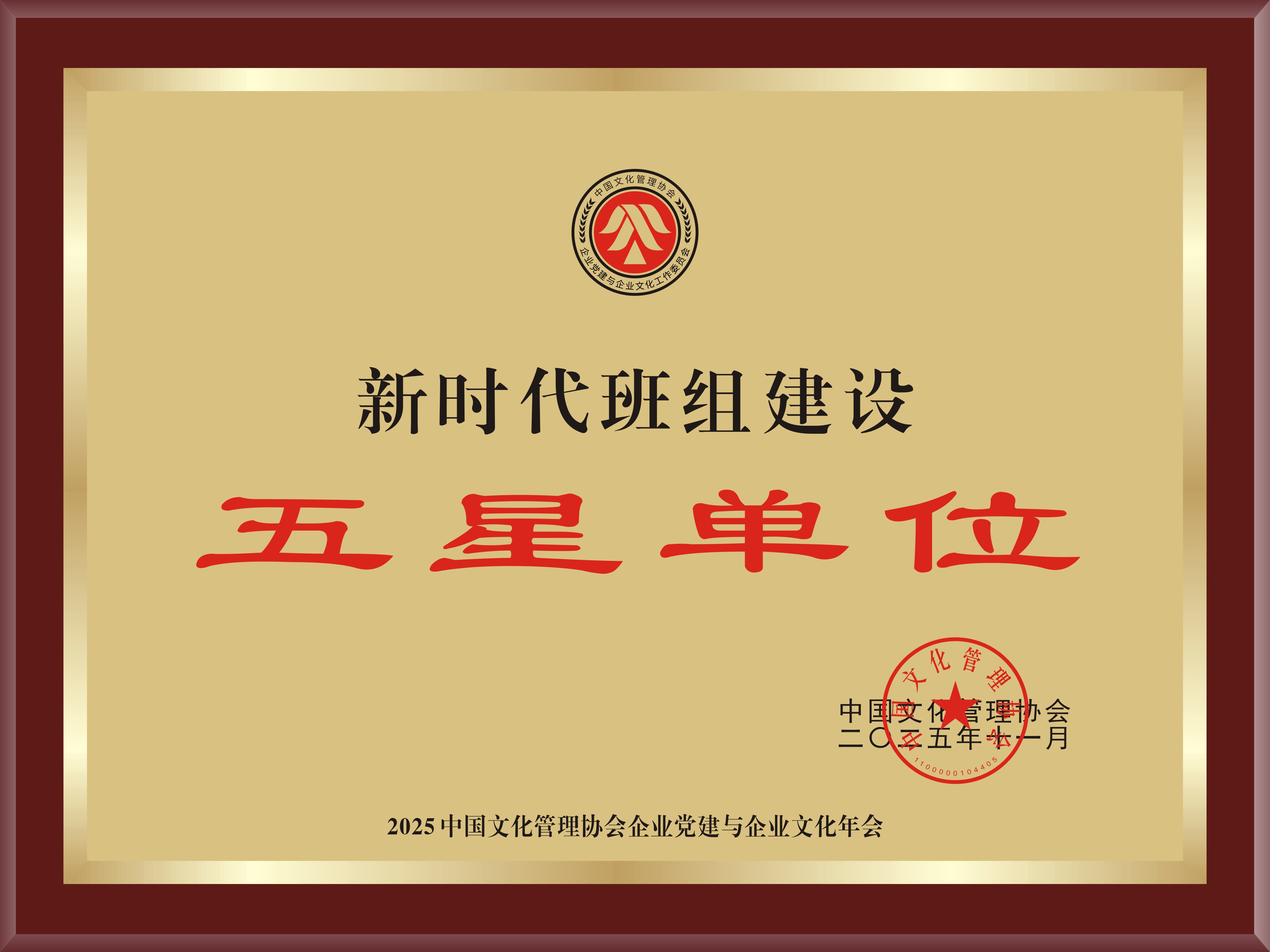 2025年11月,公司被中国文化管理协会授予“2025年度新时代班组建设五...