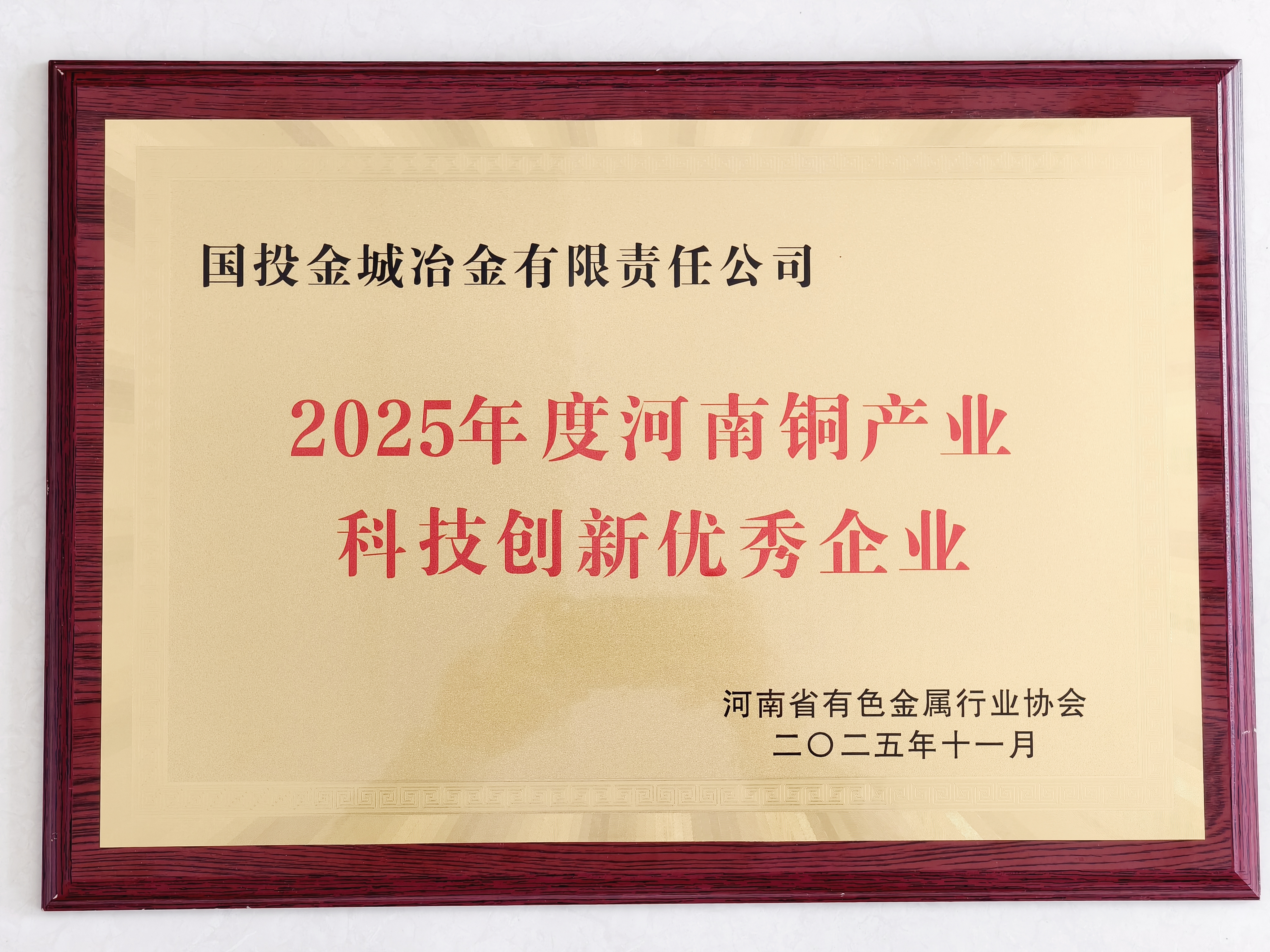 2025年11月,公司被河南省有色金属行业协会授予“2025年度河南铜产业...