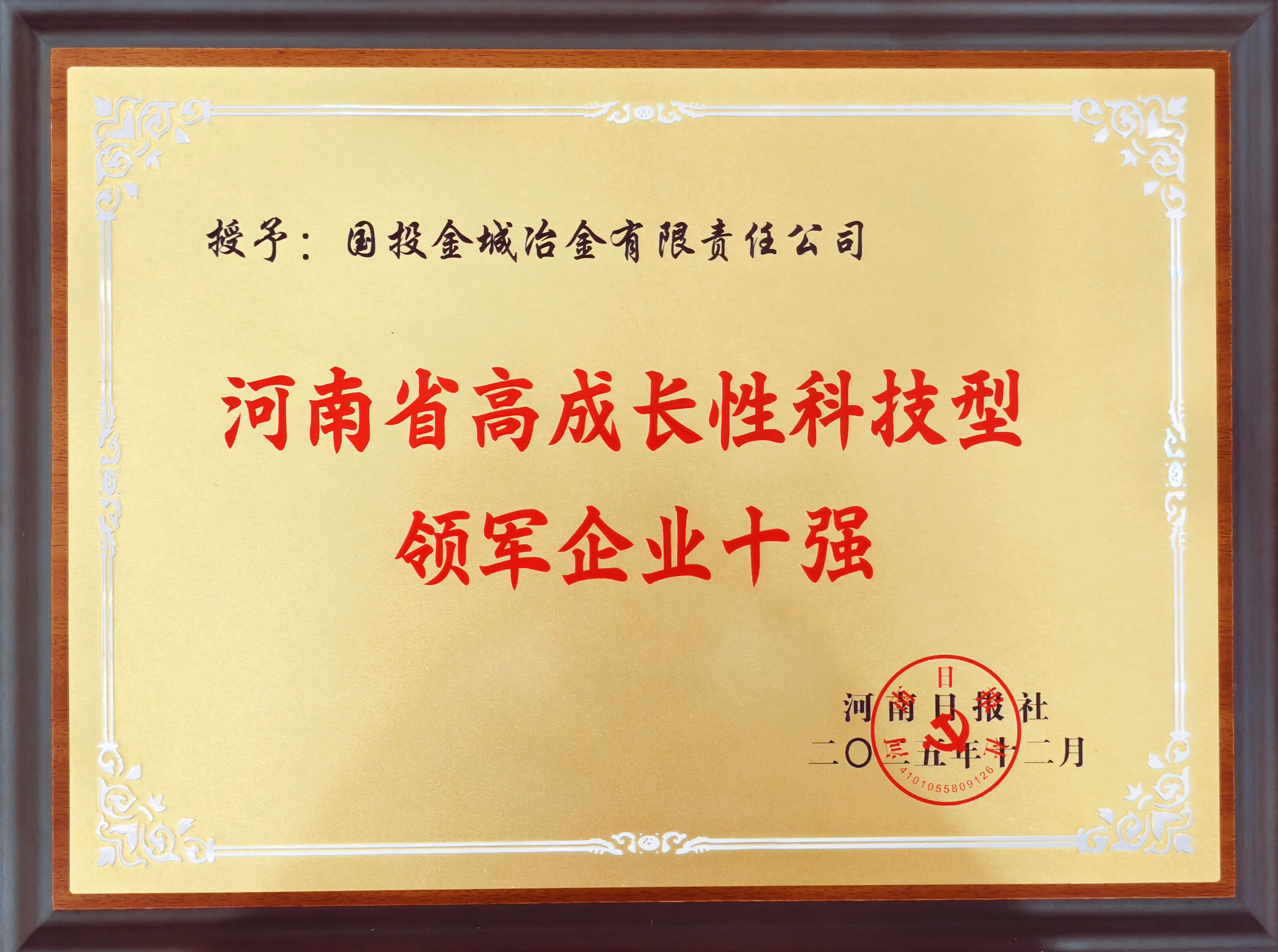 2025年12月30日,公司获评“河南省高成长性科技型领军企业十强”。...