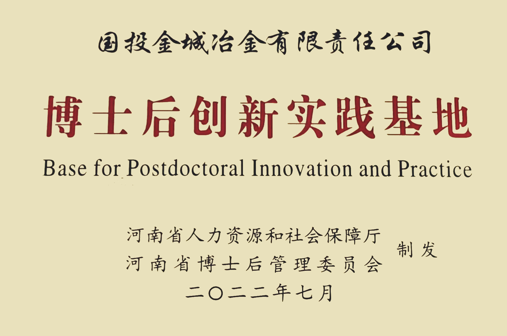 2022年7月,公司被授予“博士后创新实践基地”。